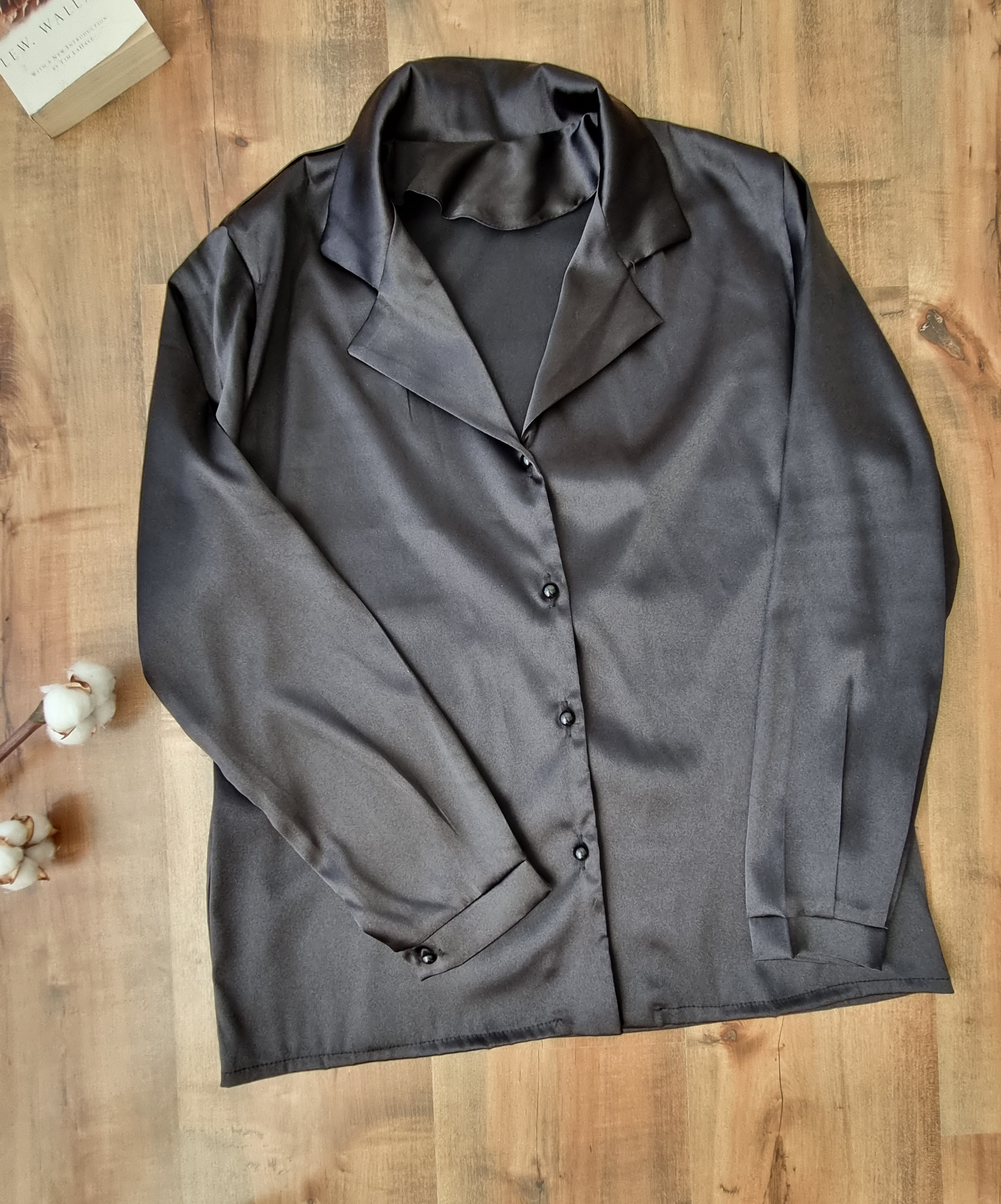 شومیز زنانه رنگ مشکی جنس ساتن ال ایکس