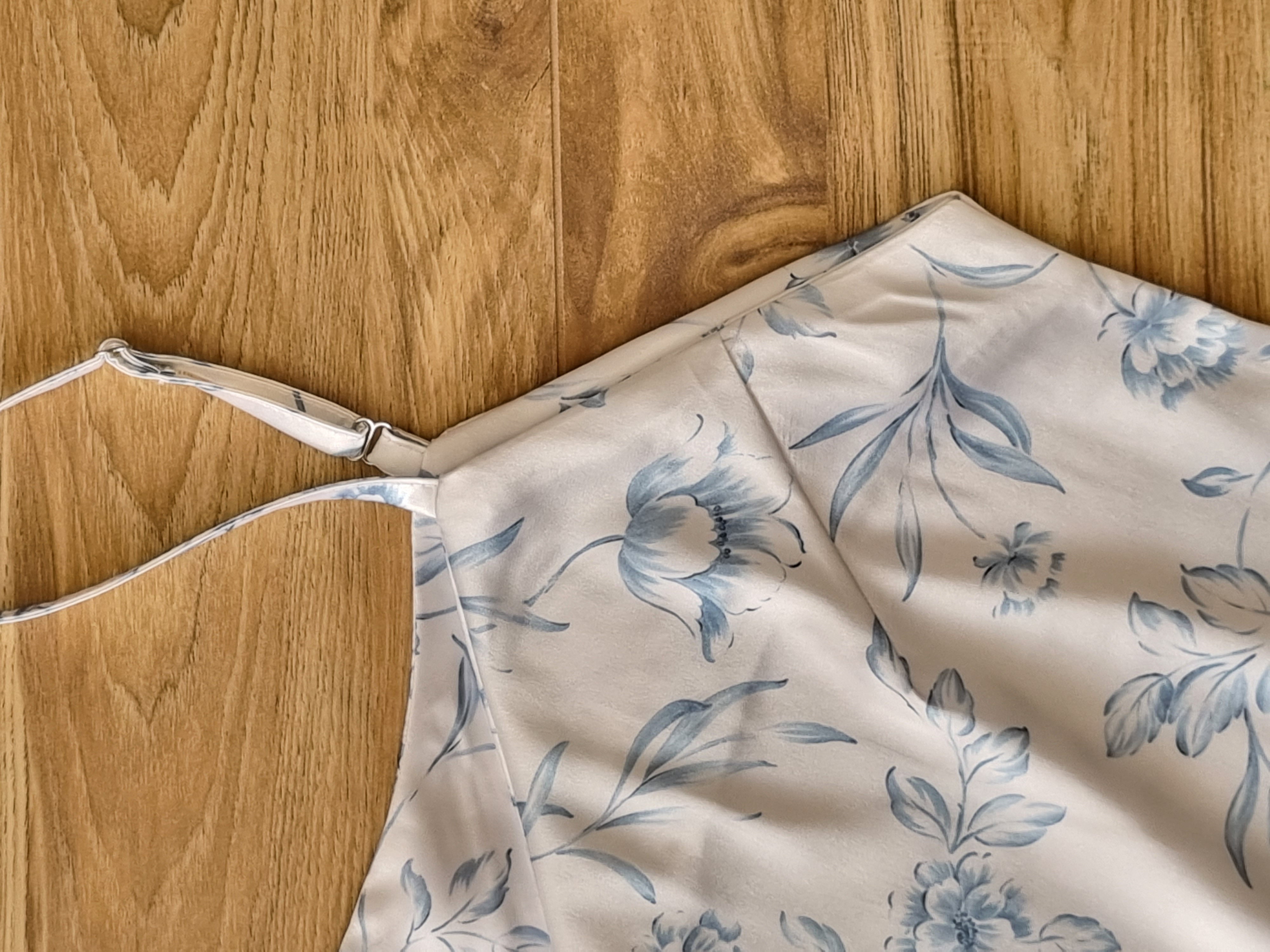 پیراهن گلدار آبی زنانه جنس ساتن ال ایکس