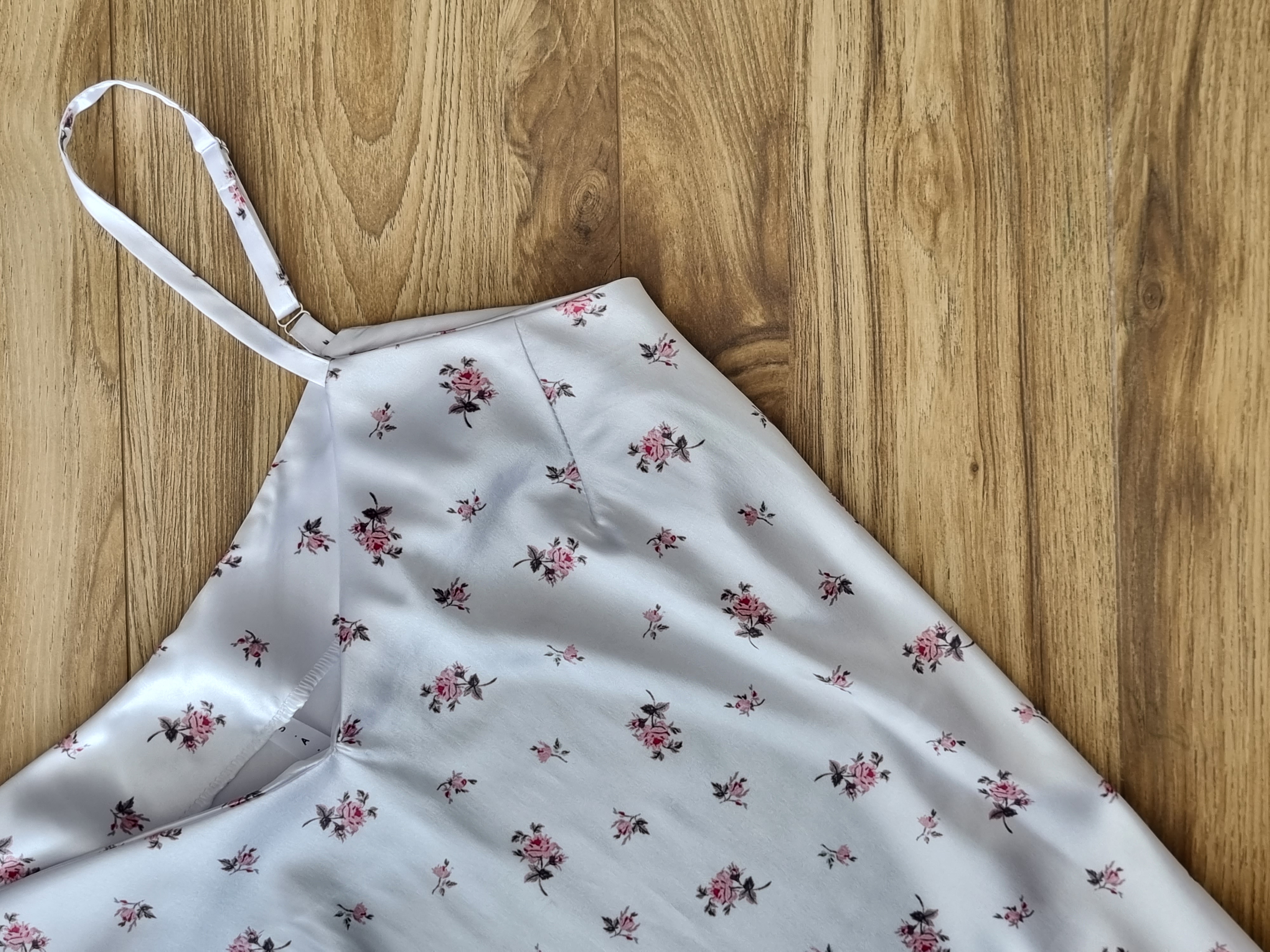پیراهن گلدار زنانه رنگ صورتی جنس ساتن ال ایکس