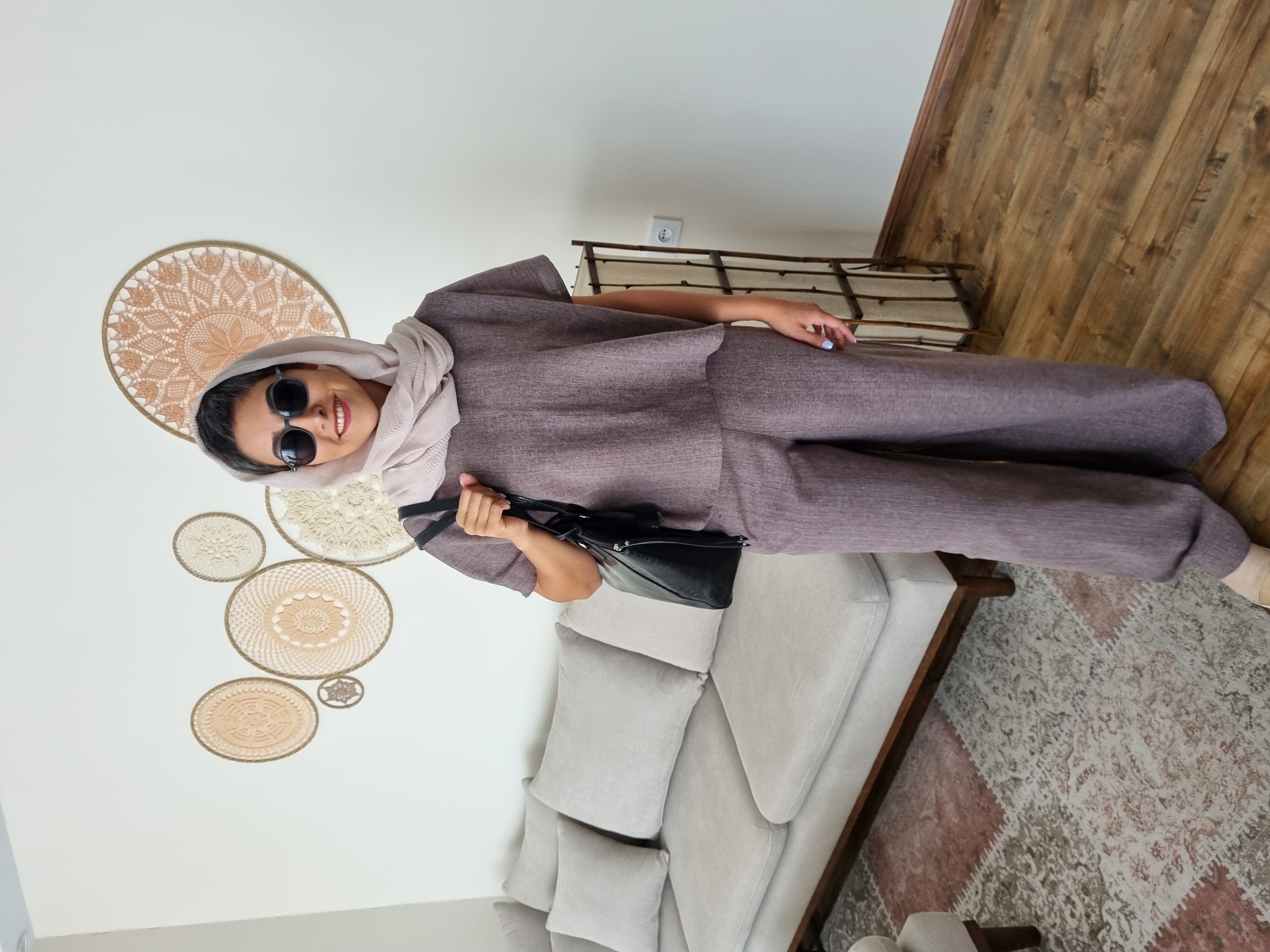 ست بلوز و شلوار زنانه جنس لینن رنگ قهوه ای