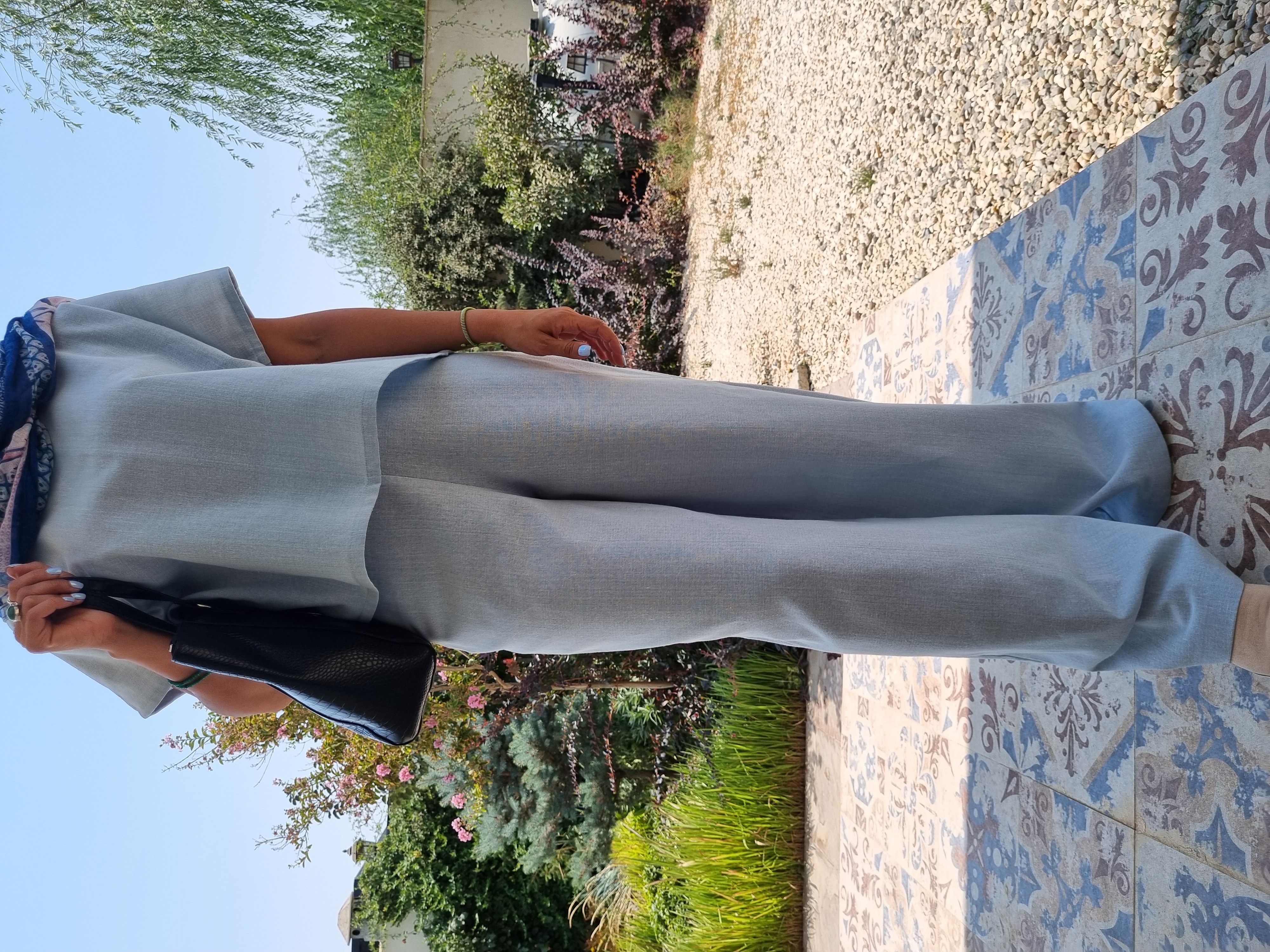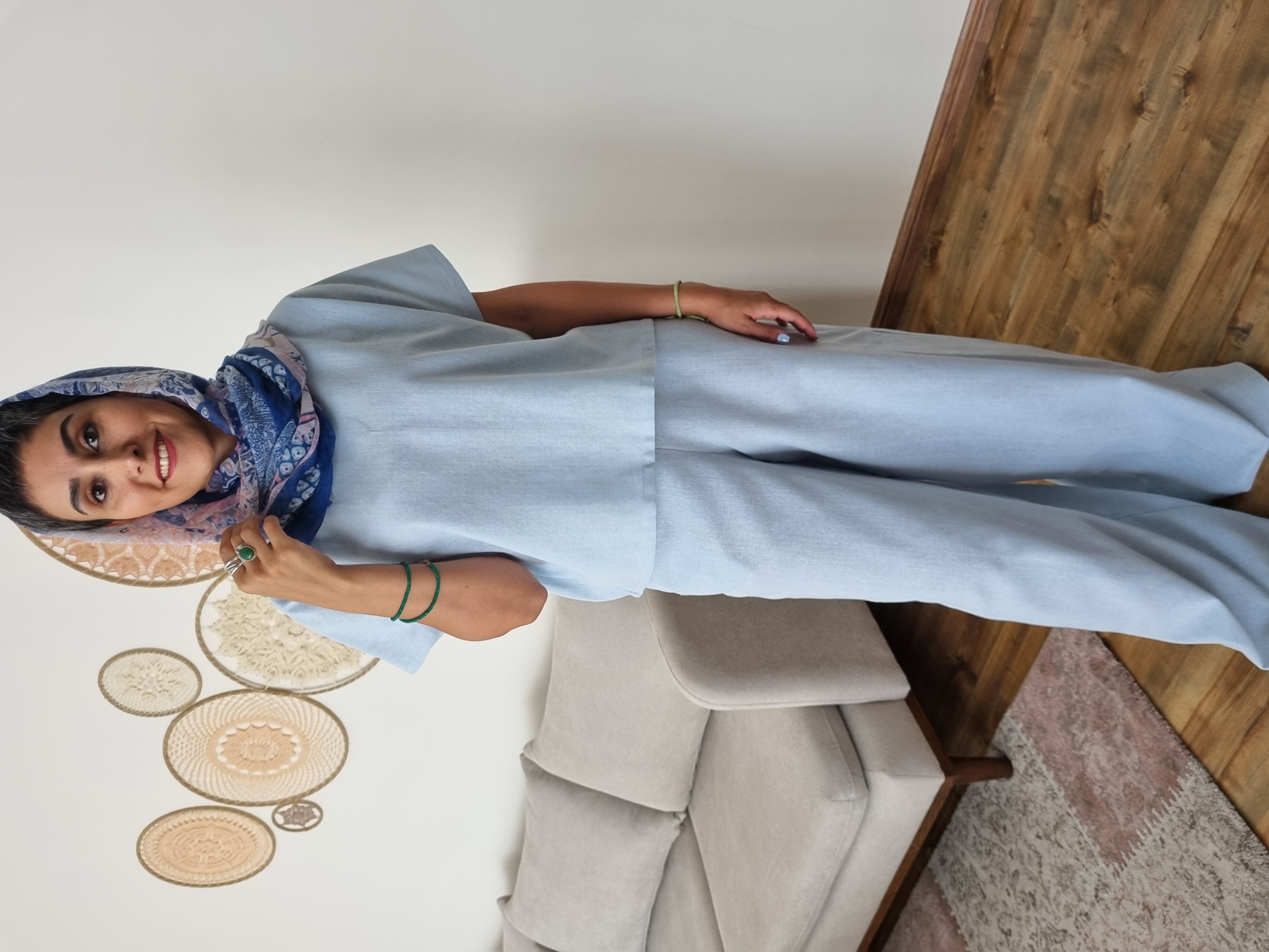 ست بلوز و شلوار زنانه جنس لینن رنگ آبی