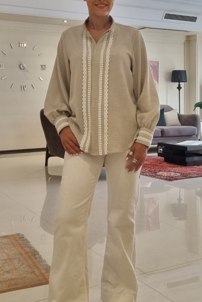 شومیز زنانه جنس لینن شانتون رنگ طوسی
