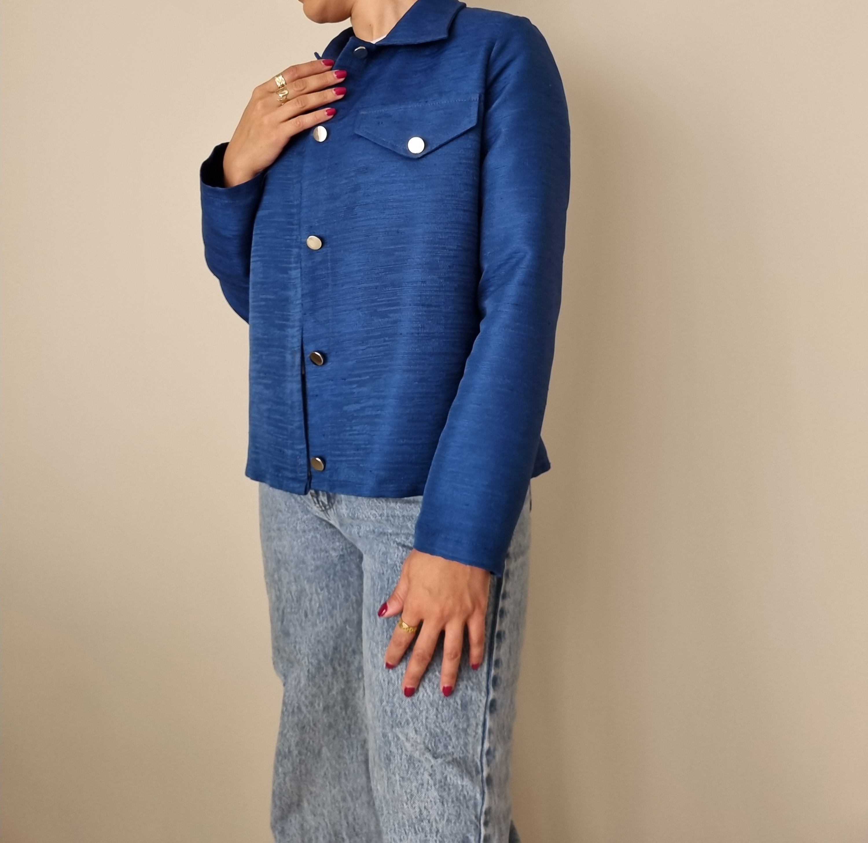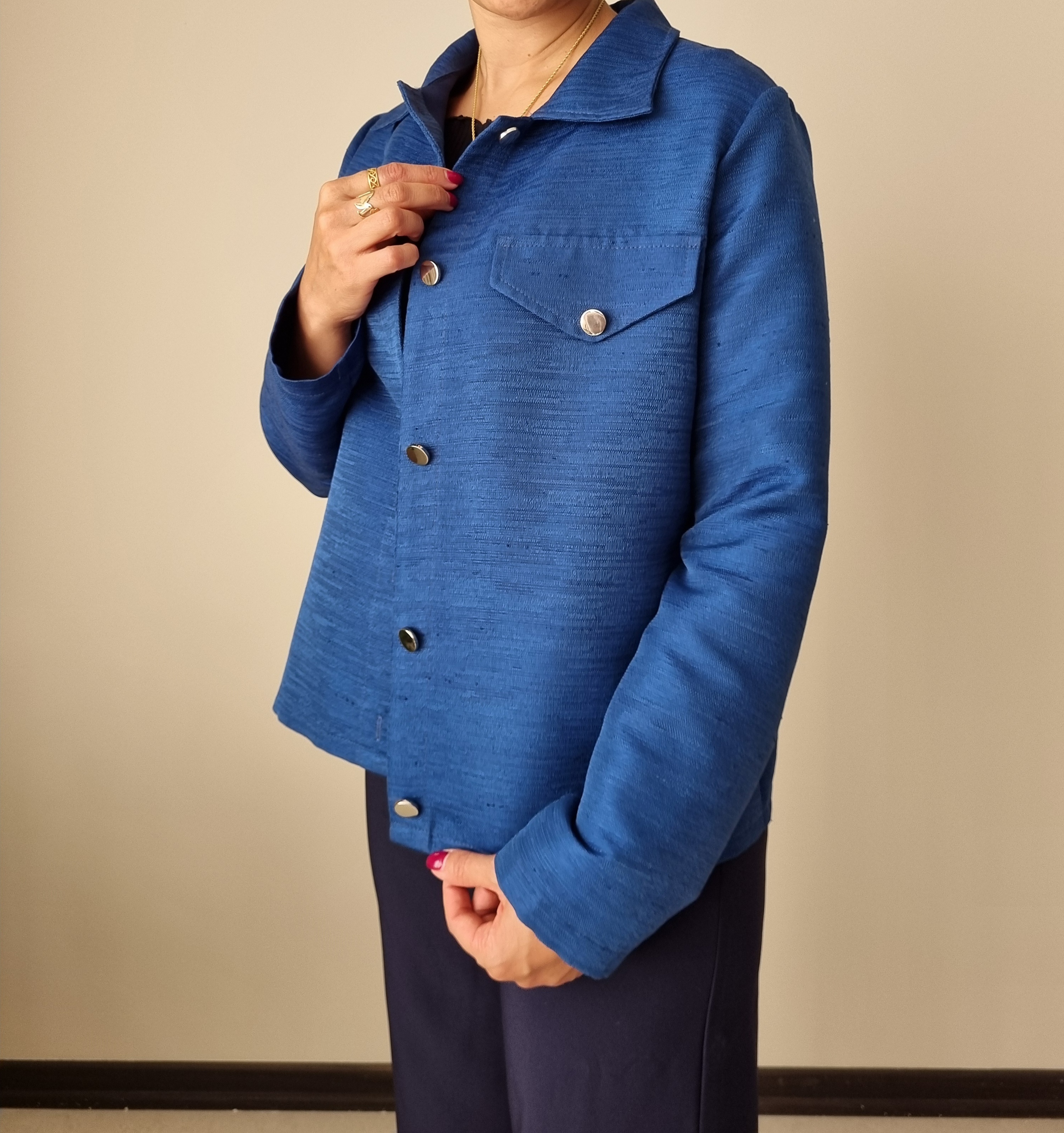 کت زنانه تک رنگ آبی کاربنی