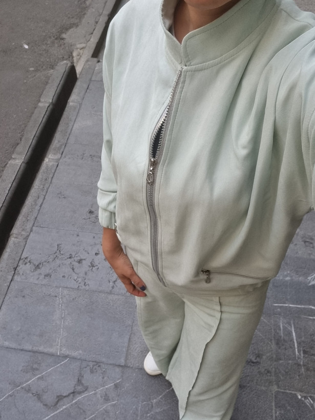 ست بامبر جکت و شلوار زنانه رنگ سبز جنس کتان زارا