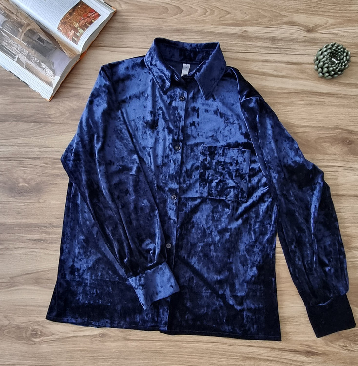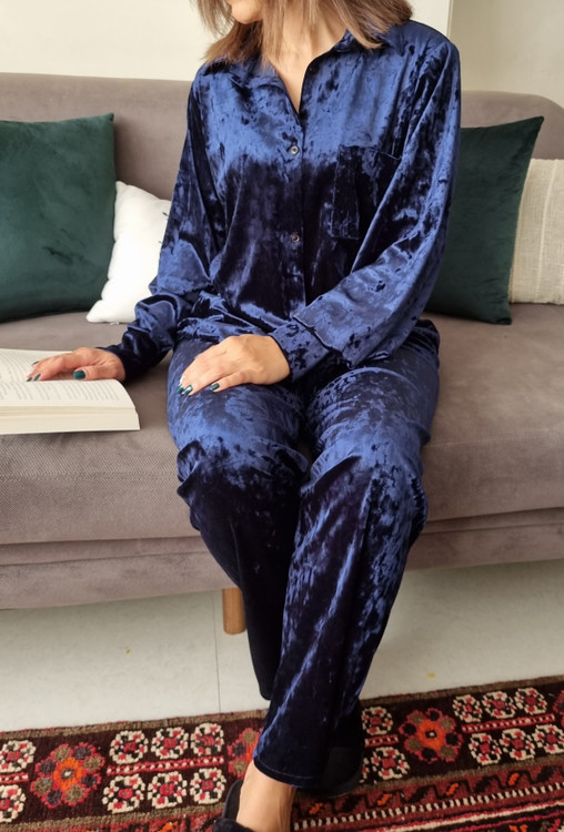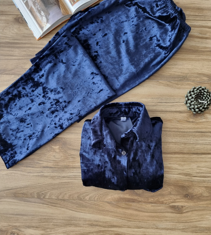 ست بلوز و شلوار زنانه جنس مخمل ابر و بادی رنگ سرمه ای